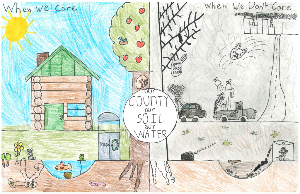 The SWCD Poster Contest gives local 4th grade students the opportunity to explore conservation through art and learning. With the official theme “Our County, Our Soil, Our Water,” SWCD staff visit classrooms during the month of April, an important environmental month, to present lessons on soil and water conservation. Students learn what conservation is, why it matters, and how they can be better conservationists in their everyday lives. After the presentations, students create original posters reflecting the theme. Posters are voted on, and winners receive custom prizes in recognition of their creativity and conservation message.
